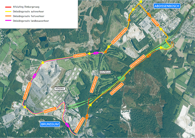 Vanaf maandag 15 oktober t/m maandag 29 oktober 2018 wordt de Rimburgerweg ter plaatse van de tunnel afgesloten voor verkeer. Het wegprofiel in de tunnel wordt dan aangepast naar de eindsituatie. Er zijn omleidingsroutes ingesteld voor alle verkeer. De golfbaan is dan alleen bereikbaar vanuit Landgraaf. Tevens wordt op donderdag 25 oktober 2018 op een deel van de Toeristenweg asfaltverharding aangebracht. De Toeristenweg wordt hiervoor afgesloten. Fietsers worden deze dag omgeleid via de Rimburgerweg (zie afbeelding). Deze is dan nog afgesloten, maar aan fietsers wordt doorgang geboden.