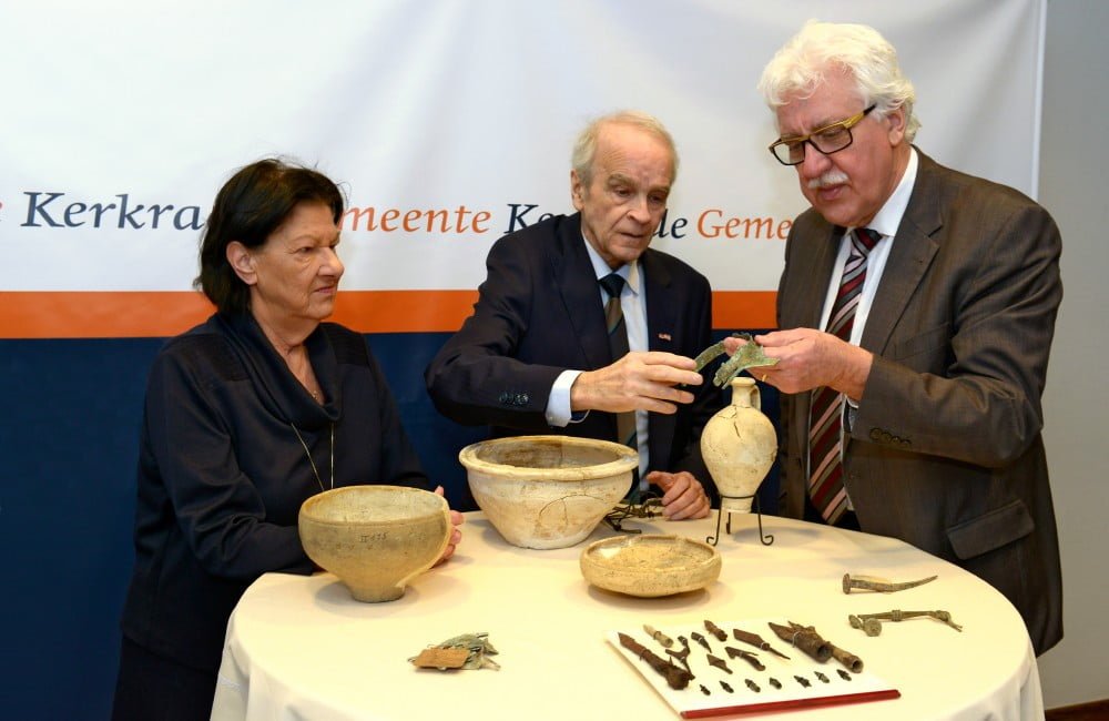 KERKRADE – Op dinsdag 15 maart nam wethouder Jo Bok (Cultuur) 16 historische voorwerpen in ontvangst. Ze zijn afkomstig uit de collecties van de heer Plettenberg, die zich jarenlang heeft ingezet voor het behoud van het Kerkraads archeologisch erfgoed.
