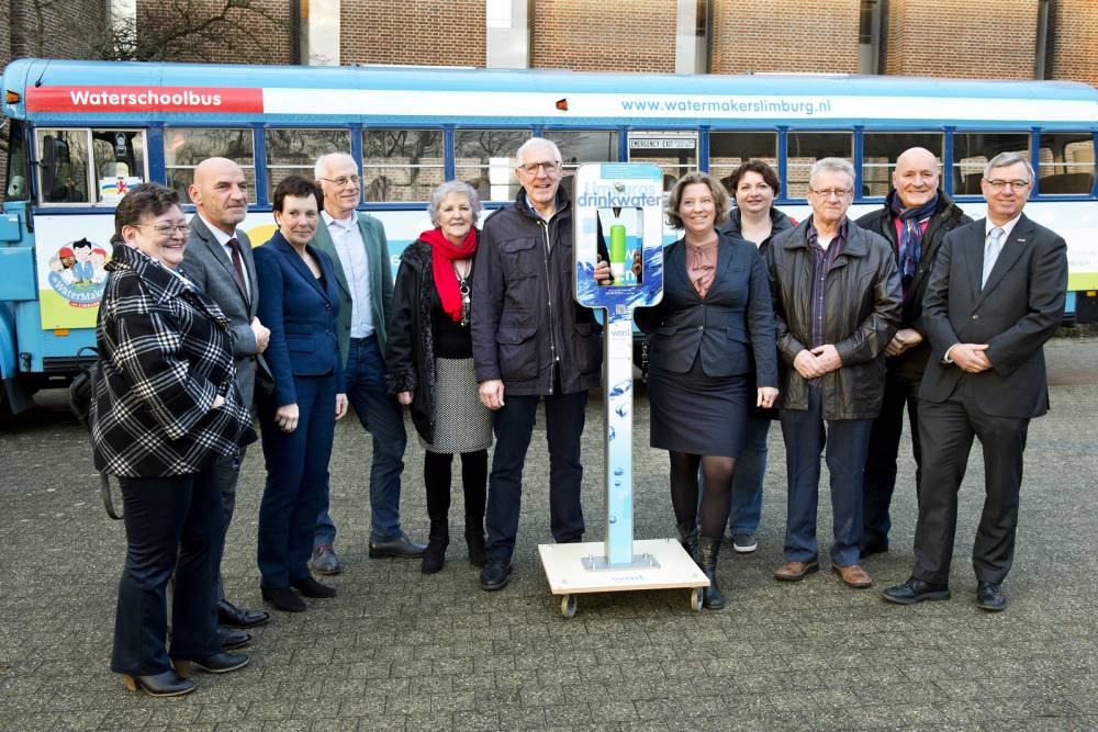 ROERMOND – Meer aandacht voor kraanwater als gezonde dorstlesser, kraanwater op meer evenementen, meer watertappunten in Limburgse gemeenten, samenwerking in educatie over water, gezondheid en duurzaamheid: de Provincie Limburg en drinkwaterbedrijf WML gaan vanaf 2017 samen acties uitvoeren om het drinken van gezond en duurzaam kraanwater in de provincie te stimuleren. Als startsein overhandigden de gedeputeerden Van Rijnsbergen en Prevoo en WML-directeur Doedel vandaag een watertap aan bewoners van de wijk De Donderberg en de Roermondse wethouder IJff.