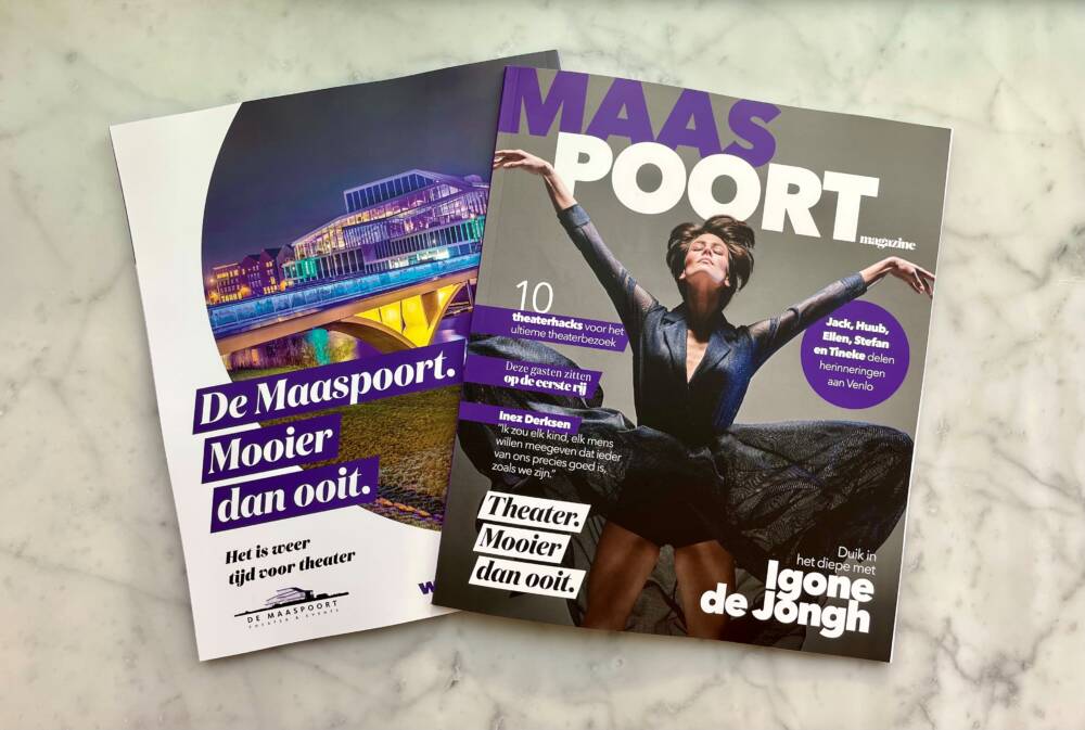 “Het Maaspoort magazine is totaal anders dan de brochure die we normaal gesproken lanceren in mei. In juni lanceerden we het nieuwe theaterprogramma voor theaterseizoen 2021-2022, toen was er nog zoveel onzekerheid dat een reguliere brochure drukken en verspreiden een te groot risico zou zijn. Daarom werkten we deze zomer met het hele team aan de inhoud van een eigen Maaspoort magazine. Het doel hiervan is om mensen weer zin in theater te laten krijgen en aan te sporen om online het programma te bekijken en weer een heerlijke avond of middag theater te plannen. Want theater is mooier dan ooit na zo’n lange periode met weinig theater. We zijn ontzettend benieuwd wat de lezers ervan vinden.” zegt Linda Keijzers-van Vegchel, Manager Marketing, Programmering & Educatie bij De Maaspoort.
