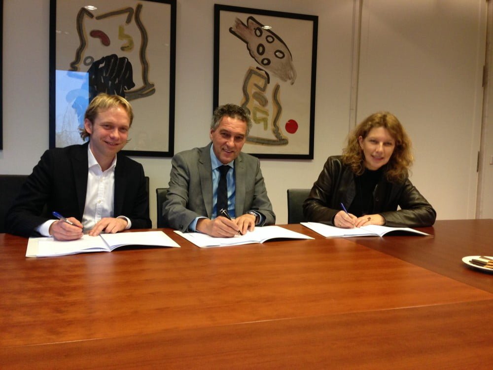 Van links naar rechts: Maastrichts wethouder Gerdo van Grootheest, Limburgs gedeputeerde Hans Teunissen en directeur Susan Lammers van de Rijksdienst voor het Cultureel Erfgoed ondertekenden vandaag een overeenkomst om samen de schouders te zetten onder de organisatie van het jaarlijkse congres van de European Association of Archaeologists (EAA) in september 2017 te Maastricht.