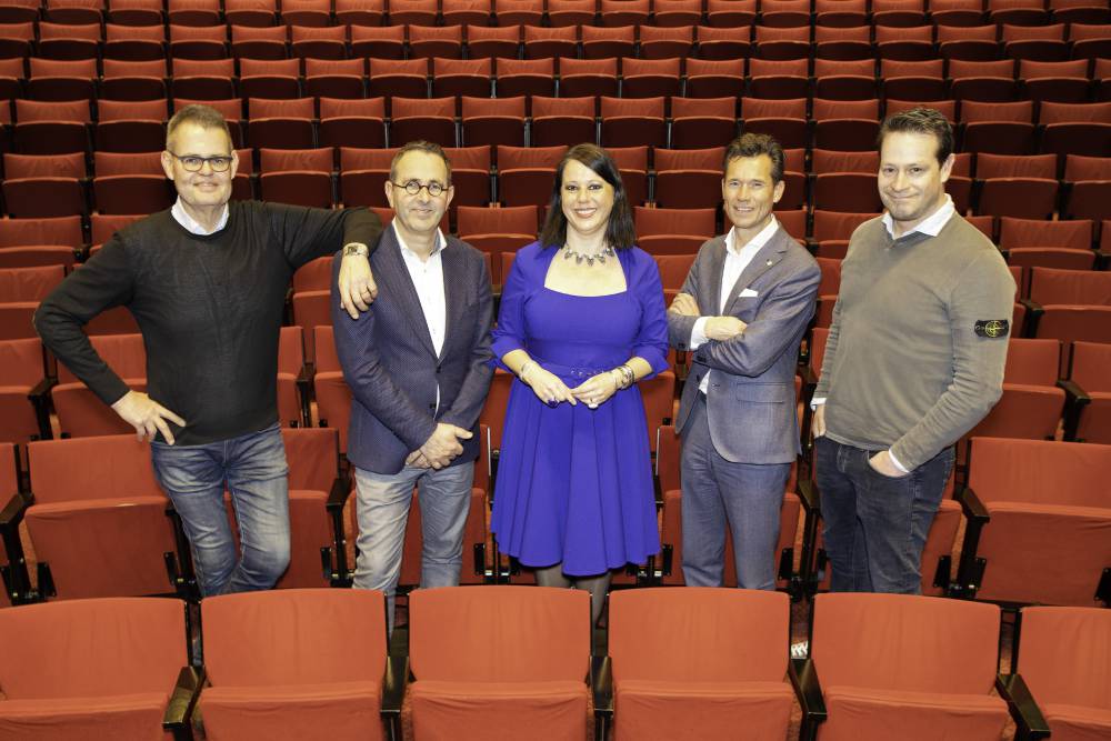 Foto v.l.n.r. : Henk Luiten (TheaterHotel De Oranjerie), Paul Franssen (Schouwburg Venray), Brigitte van Eck (Munttheater), Leon Thommassen (De Maaspoort Theater & Events), Dries Floris (DOK6 Theater).