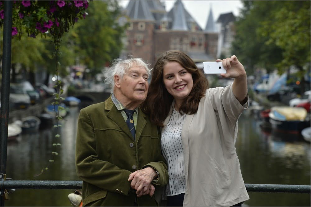 Foto: © Oranje Fonds – Bart Homburg. Fotobijschrift: Meneer de Waard (88) en zijn studentvrijwilliger Judith Stevens zijn maatjes via Stichting SeniorenStudent, ondersteund door het Oranje Fonds.