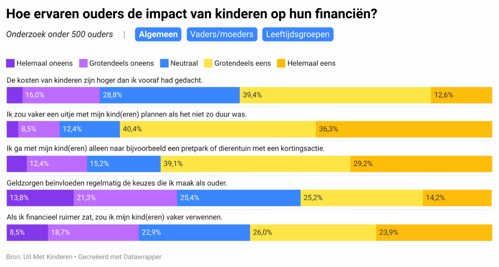 “Jonge ouders staan vaak aan het begin van hun carrière en hebben dus minder te besteden,” legt René Dekker van Uitmetkinderen.nl uit. “Dat dwingt hen om bewuster om te gaan met geld. Bovendien oriënteren zij zich online, lezen reviews, en delen ervaringen via social media – dat helpt enorm bij het maken van een goede inschatting van de kosten.”