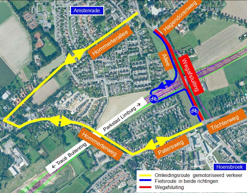 Van maandag 6 juli t/m vrijdag 10 juli wordt de Allee ingericht als éénrichtingsweg vanaf Hoensbroek richting Amstenrade. Verkeer van Amstenrade richting Hoensbroek krijgt te maken met een omleidingsroute via de Hommerterallee en Hommerterweg. De afsluiting is noodzakelijk om het nieuwe viaduct aan de westzijde op de bestaande Allee aan te sluiten, zodat het verkeer (incl. bromfietsers) in de volgende fase gebruik kan maken van het nieuwe viaduct. Fietsers maken in twee richtingen gebruik van het nieuwe fietspad over de Buitenring.