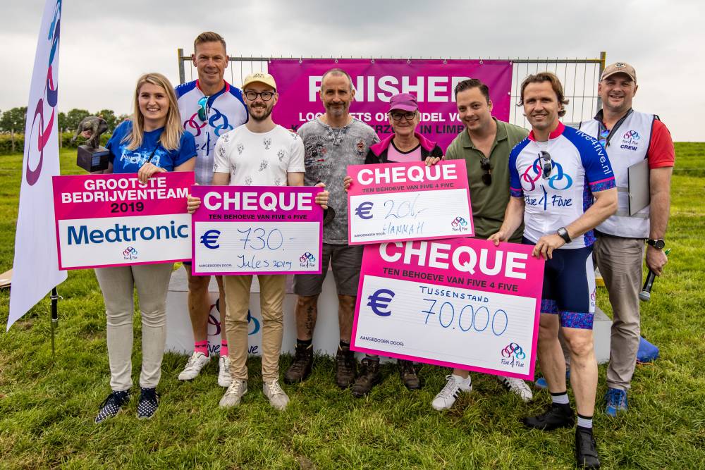 Aan het eind van de ochtend werd het resultaat bekend gemaakt. Paralympisch tennisser Sam Schröder, zelf overwinnaar van kanker, overhandigde de prijs voor grootste bedrijventeam aan Medtronic. Een aantal particuliere actievoerders werd in het zonnetje gezet. En wethouder Chris Piatek van Eijsden-Margraten overhandigde de cheque met de tussenstand aan ambassadeur van Kankeronderzoekfonds Limburg Boudewijn Zenden. Deze sprak nogmaals lovende woorden uit voor de organisatie en de vele deelnemers en sponsoren die prachtige bedrag bij elkaar hebben gebracht.